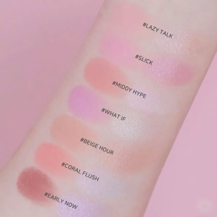 - Phấn Má Hồng Bắt Sáng Blushlighter Middy Hype 58G của nhà 3CE sở hữu công thức priming thuần khiết, kết hợp phấn má nền gốc bột kiềm dầu giúp “lót màu” tự nhiên cho làn da. Công nghệ mới này kết hợp cả hai chất phấn – lì và ánh nhũ – trong cùng một sản phẩm.