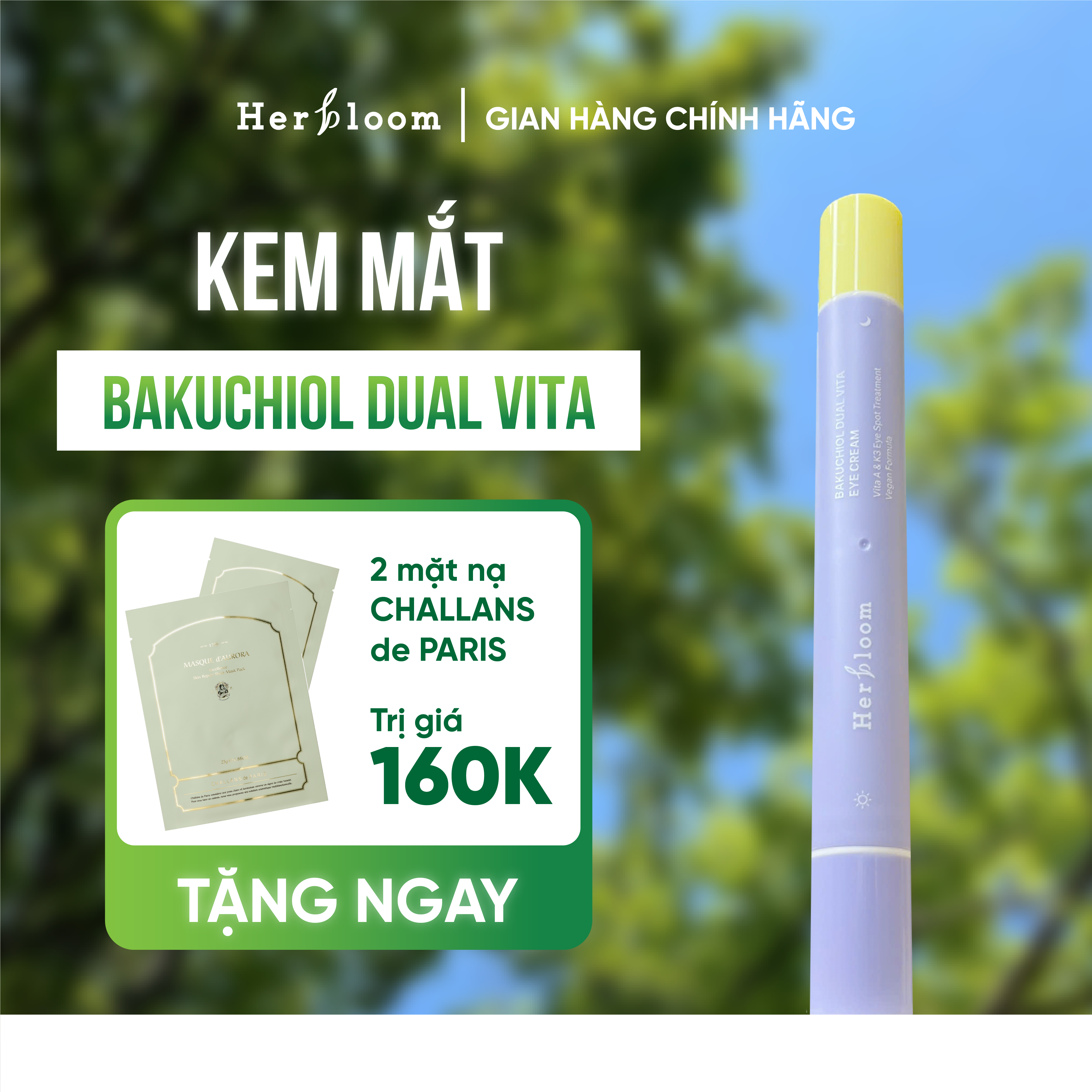 - Kem mắt BAKUCHIOL Dual Vita Eye Cream 2in1 (ngày & đêm) chứa các loại vitamin A, K và các dưỡng chất thiết yếu từ thiên nhiên, giúp nuôi dưỡng và chăm sóc vùng da quanh mắt chuyên sâu, sử dụng cho cả ban ngày và ban đêm.