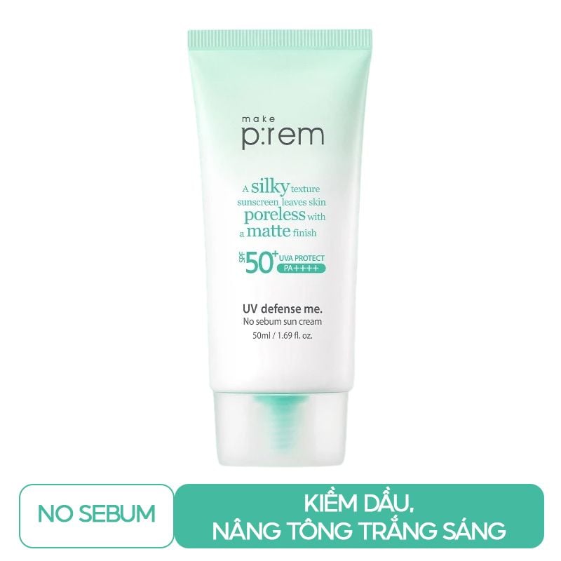 Kem Chống Nắng Vật Lý Kiềm Dầu, Nâng Tone Trắng Sáng Make P:rem UV Defense Me No Sebum Sun Cream SPF50+/PA++++ 50ml (màu xanh lá)