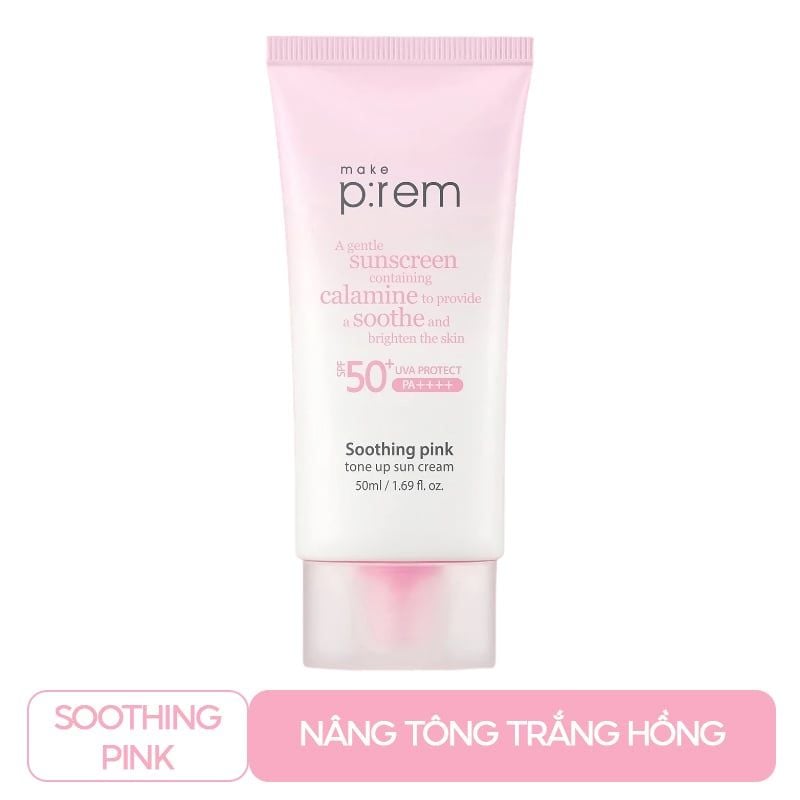 Kem Chống Nắng Vật Lý Nâng Tone Hồng Rạng Rỡ Make P:rem UV Defense Me Soothing pink Tone Up Sun Cream SPF50+/PA++++ 50ml (Màu hồng)