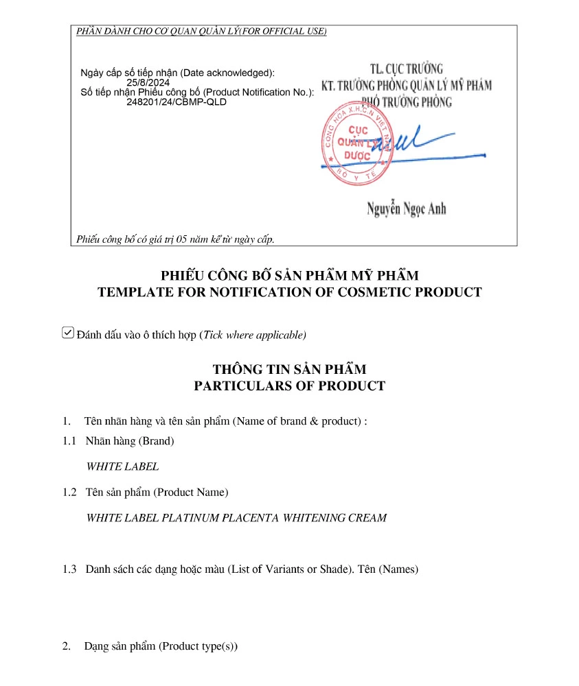 Mô tả kem White Label Platinum Placenta Whitening Cream ngừa thâm nám dưỡng trắng da