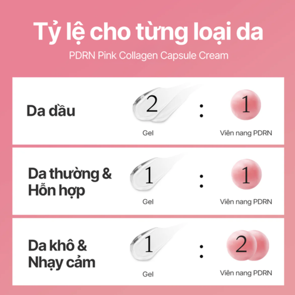 Giới thiệu giải pháp chăm sóc da mang tính cách mạng được thiết kế để chăm sóc làn da không đều màu và các đốm nâu, giúp da bạn sáng, rạng rỡ và đều màu. Loại kem tùy chỉnh này có công thức kết cấu kép độc đáo, kết hợp PDRN viên nang với gel trong suốt. Công nghệ đóng gói tiên tiến giúp duy trì hiệu quả làm săn chắc và dưỡng ẩm của DNA PDRN cá hồi cho đến khi thẩm thấu vào da để đạt được hiệu quả rạng rỡ căng bóng tối đa. Kem dưỡng ẩm dạng viên nang nhẹ cho làn da sáng và dưỡng ẩm.