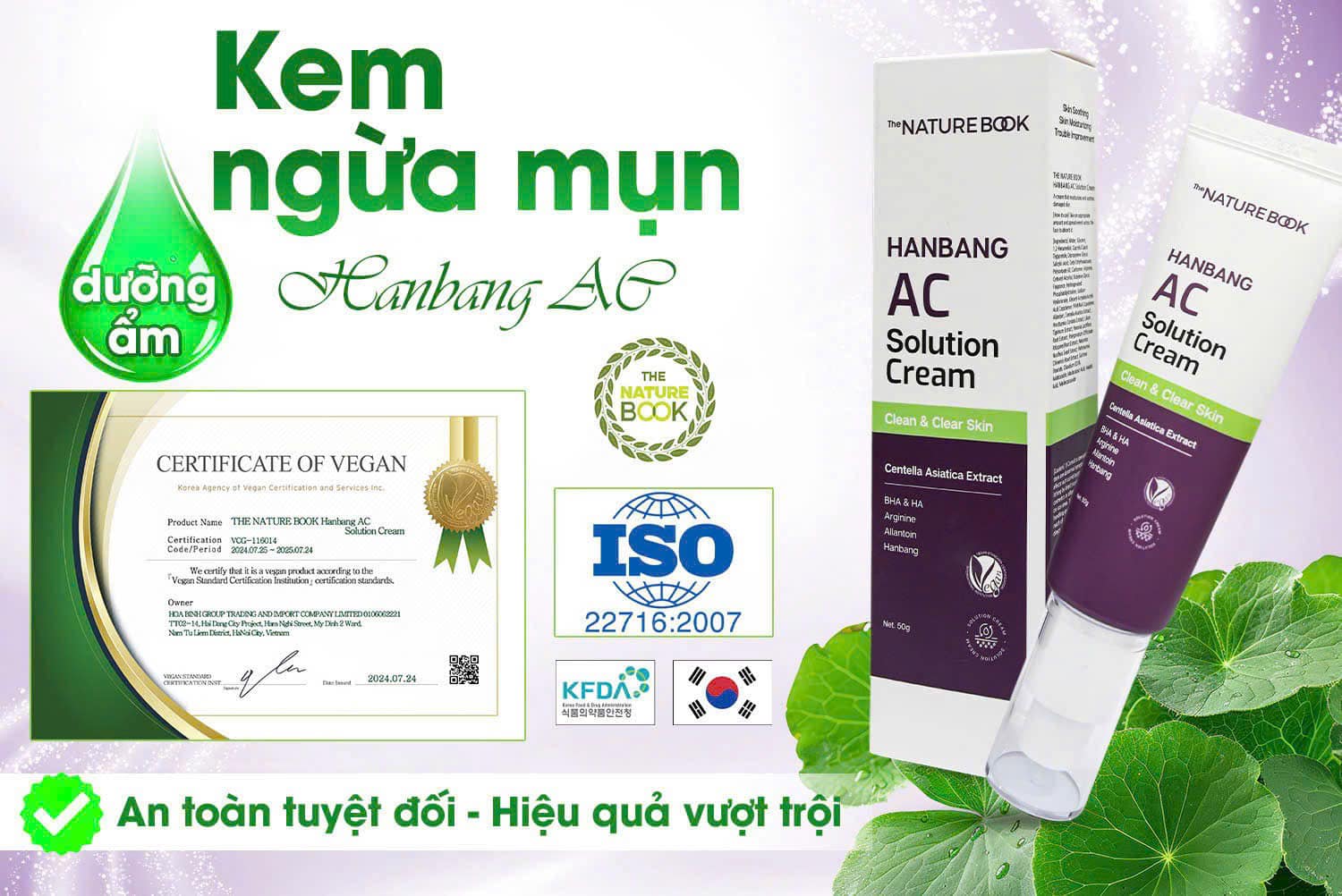 Arginine, Solicylic Acid, Sodium Hyaluronate, chiết xuất rau má, chiết xuất rau riếp cá, các thành phần Đông Y (chiết xuất hoa ly hổ, chiết xuất rễ cây bạch thược, chiết xuất rễ cây ngọc trúc, chiết xuất họt sen hồng) và một số thành phần khác xem trên bao bì sản phẩm.