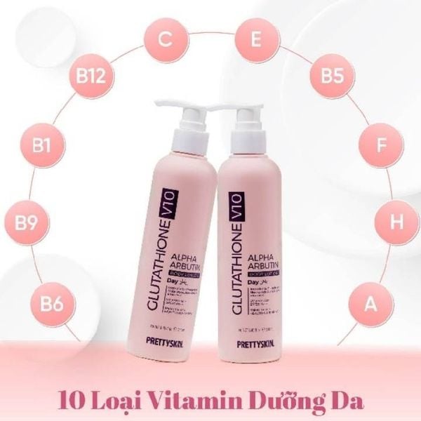 Kem Dưỡng Thể Trắng Da Ban Ngày Pretty Skin Body Glutathione V10 Alpha Arbutin Body Lotion có chứa các thành nổi bật như: