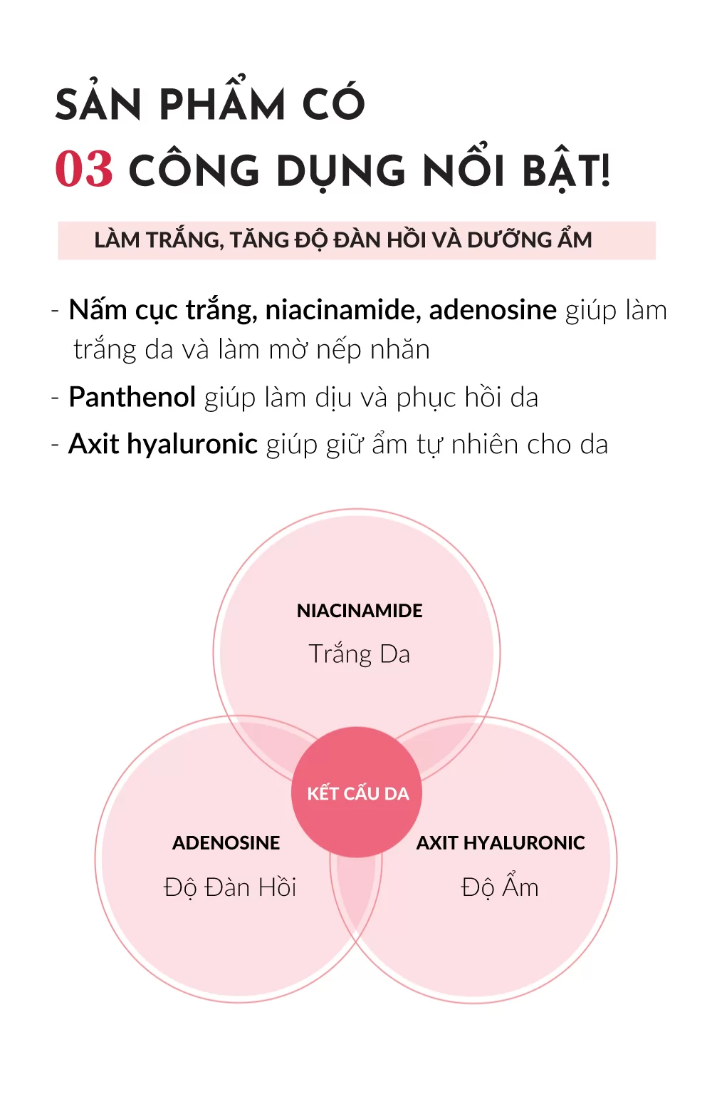 - Niacinamide (Vitamin B3): giúp duy trì độ ẩm, cải thiện nếp nhăn và mờ thâm nám.