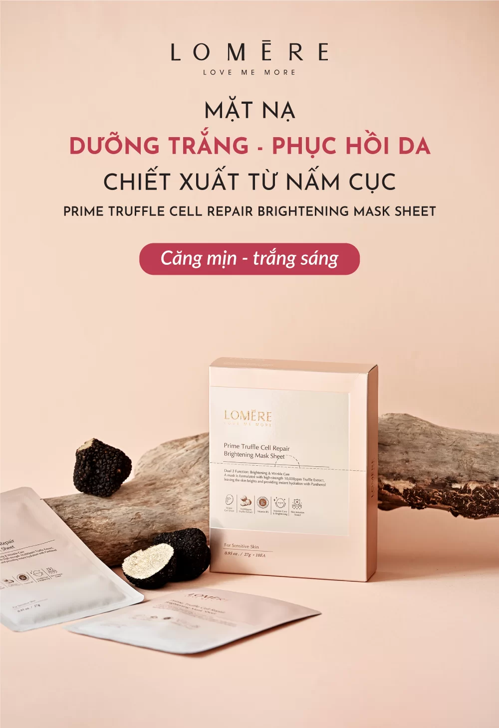 Mặt nạ dưỡng trắng – phục hồi da Lomere prime truffle cell repair brightening Mask Sheet