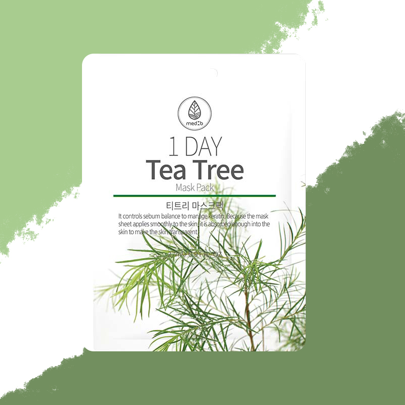 Mặt nạ MEDB 1 Day Tea Tree Mask Pack là dòng mặt nạ dưỡng da Hàn Quốc, chứa tinh chất tràm trà giúp làm dịu, giảm viêm, hỗ trợ chăm sóc da mụn và dưỡng ẩm. Sản phẩm thuộc dòng Medb One Day nổi bật với khả năng hồi phục, nuôi dưỡng da căng mịn hàng ngày