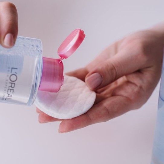 - Đổ một lượng nước tẩy trang vừa đủ vào bông tẩy trang.