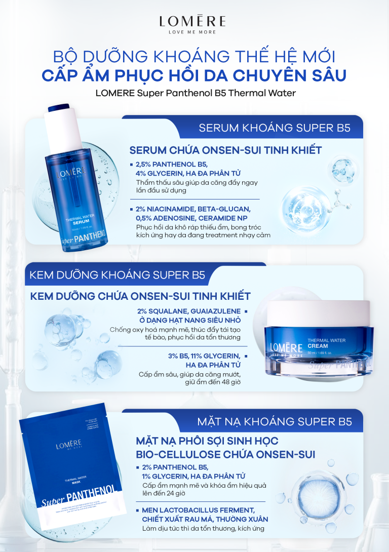 - Panthenol (Vitamin B5): Làm dịu da, cung cấp độ ẩm và và cải thiện làn da bị tổn thương