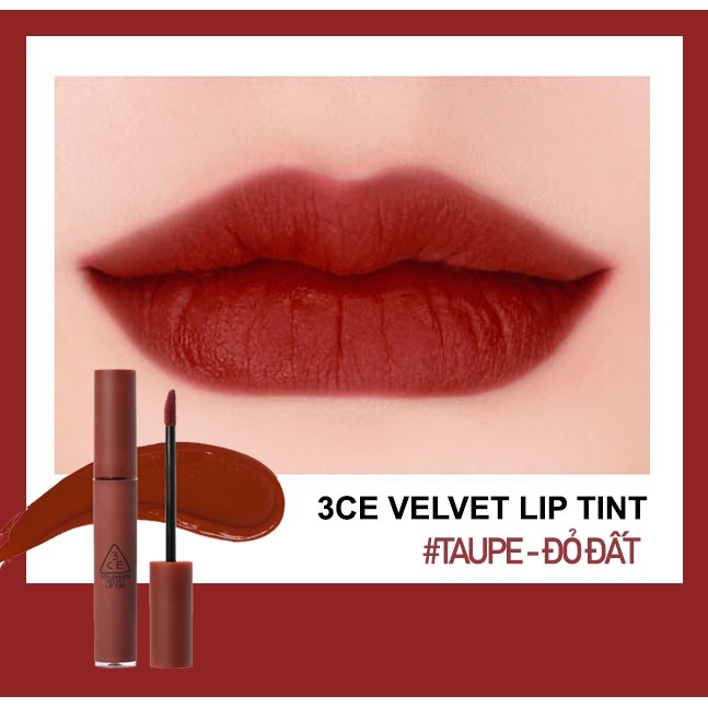 3CE Velvet Lip Tint là một trong những dòng son kem được ưa chuộng nhất từ 3CE. Chất son nhung mềm mịn, không vón cục và có thể giữ được trên môi từ 5 đến 6 tiếng đồng hồ khi không ăn uống. Đặc biệt, bảng màu son 3CE Velvet Lip Tint cũng rất đa dạng, với 10 màu, phù hợp với nhiều tông da và các phong cách trang điểm khác nhau