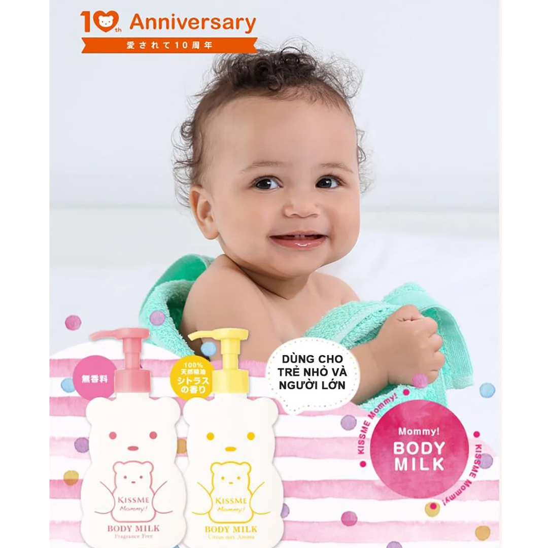 KISSME Mommy Body Milk C Sữa dưỡng thể trẻ em cho bé từ 6 tháng tuổi 200g mùi cam chanh mang đến những công dụng tuyệt vời trong việc chăm sóc làn da của bé như:
