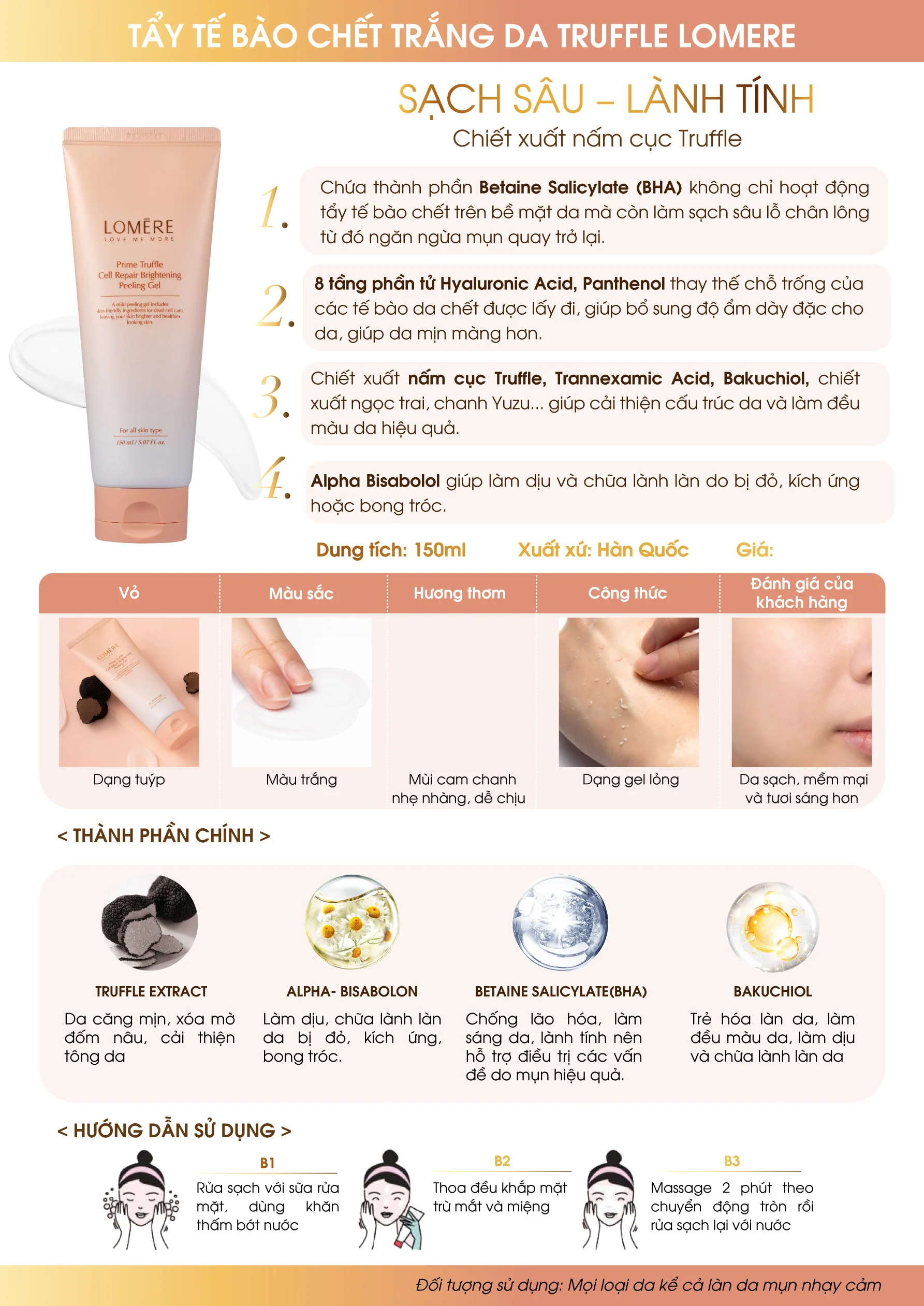 Tẩy Tế Bào Chết Sạch Sâu Trắng Da Lomere Prime Truffle Cell Repair Brightening Peeling Gel