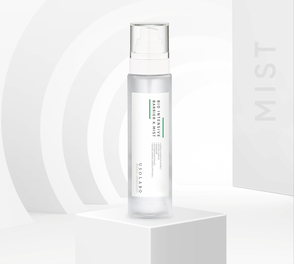 Xịt khoáng toner Bio Intensive Barrier K Mist – Nước cân bằng làm sạch sâu và tăng cường ẩm, làm dịu da sau xâm lấn. Sản phẩm nhà USOLAB có hiệu quả trong làm sạch sâu làn da và cân bằng pH cho da sau bước tẩy trang và rửa mặt, đảm bảo loại bỏ hoàn toàn vi khuẩn và bụi bẩn tận sâu trong lỗ chân lông. Làm dịu da tức thì sau xâm lấn, giảm đỏ, sưng, viêm.